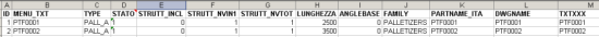 Apriamo il foglio di Excel del DB Layout e attiviamo la scheda DESCRIPTORS_DICT (l'indice delle famiglie). Aggiungiamo una riga alla fine indicando il codice COMPONENT della nuova famiglia. Nel nostro caso utilizzeremo PALL_A per identificare la famiglia di pallettizzatori di tipo A. Nella colonna DESC_ITA inseriamo la descrizione della famiglia, indirizziamo la TAB_DESC alla scheda PALLETTIZERS (che andremo a creare, definiamo la FAMILY PALL, di tipo CONFEZIONI (ROOTFAMILY) e il tipo di componente a G (GENERIC). Tutti gli altri campi possono essere lasciati a zero.