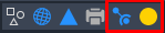 You can view connectors in native mode (block), design mode (tripod - 1 ) or use mode (sphere - 2 ).
