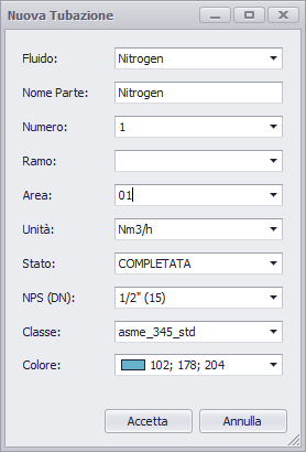 The configuration dialog for specifying the piping details will be displayed.