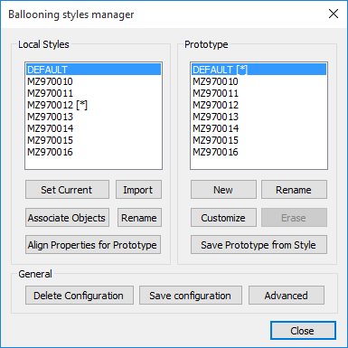 Dal dialogo di gestione degli stili di pallinatura è necessario creare i prototipi degli stili di pallinatura relativi alle distinte da utilizzare.