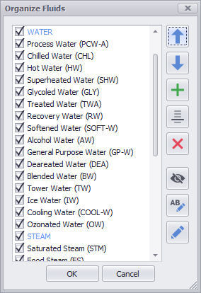 A dialog box dedicated to managing fluid definitions will open, allowing you to edit existing fluids, add new fluids, and delete fluids that are no longer needed.