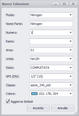 Once you have completed your changes, press Accept in the dialog box. The system will update all associated elements (for example, piping symbols and polylines).