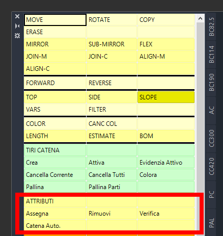 Each transport family can receive a mass assignment of attributes useful for calculations and counting. In practice, it is possible to define which figures will receive a certain attribute and which will not, without the operator having to manually select the components. The assignment of attributes occurs through a series of commands in the consoles.