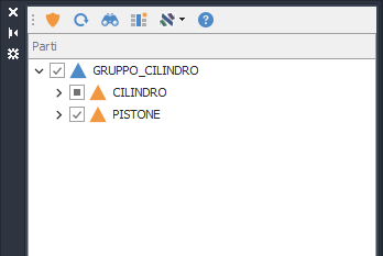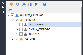 To the left of each individual part icon there is a flag that allows the user to manage the switching on/off of the part.