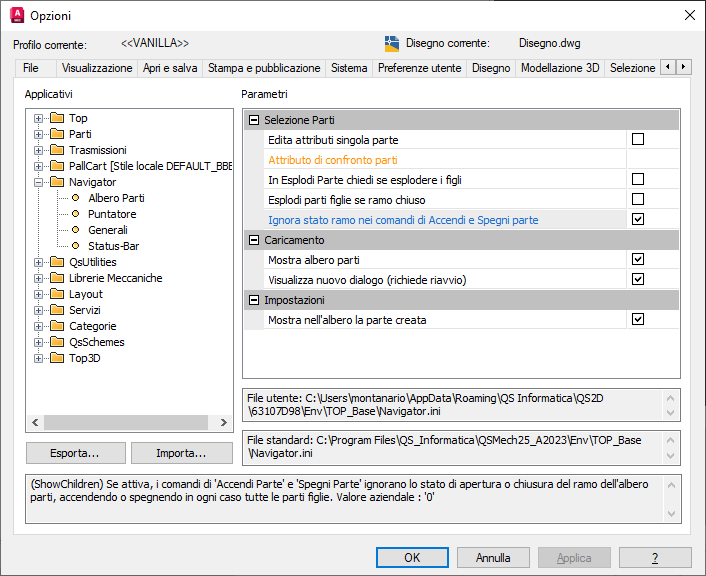 Note : If a part that has children is selected and the tree branch is closed, the activation/deactivation effect propagates from the directly affected part to all its subparts.