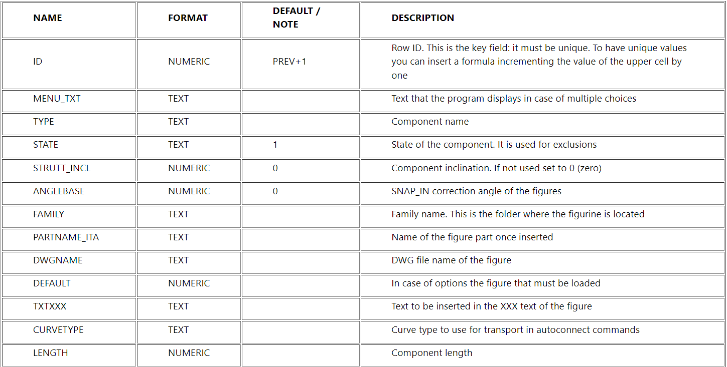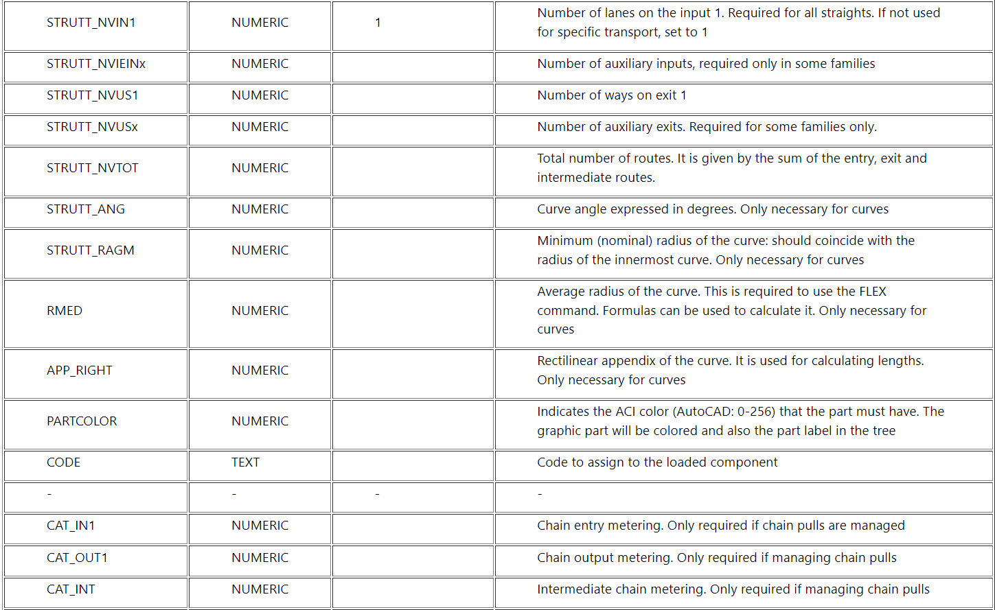 QS Informatica - QS Mechanical Suite 26Top Layout [Layout26]Database DefinitionFields of the components sheet Standard Fields Conveyors and Sequential Components