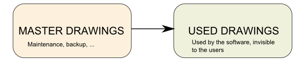 Whenever maintenance of the figures is required, the user must operate on the original drawings. Once the maintenance operations have been completed, simply start the publication program and the tables will be made available to all users.