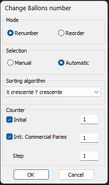 In the layout field, it can be useful to mark an assembly with an increasing progressive number based on the position of the parts. Thanks to this command, it becomes possible to mark the drawing normally and then proceed to reorder the numbering. It is also possible to number using an increment step.
