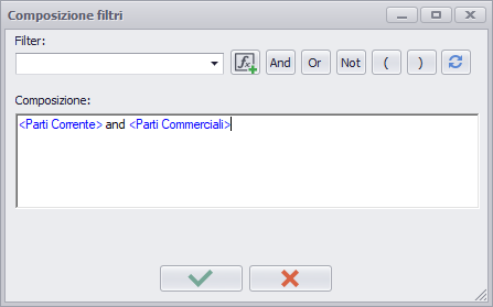 The compound filter allows you to apply a "complex" filter composition to the BOM. The editing window allows you to enter the composition formula.