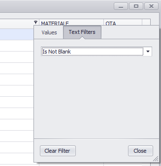 While the filters act upstream on the "calculation" of the BOM, the interface filters work downstream and allow a "fast and brutal" skimming of the final BOM table. Each column can be used to filter the final result. In the example, the result is processed by eliminating the rows that have empty column content.