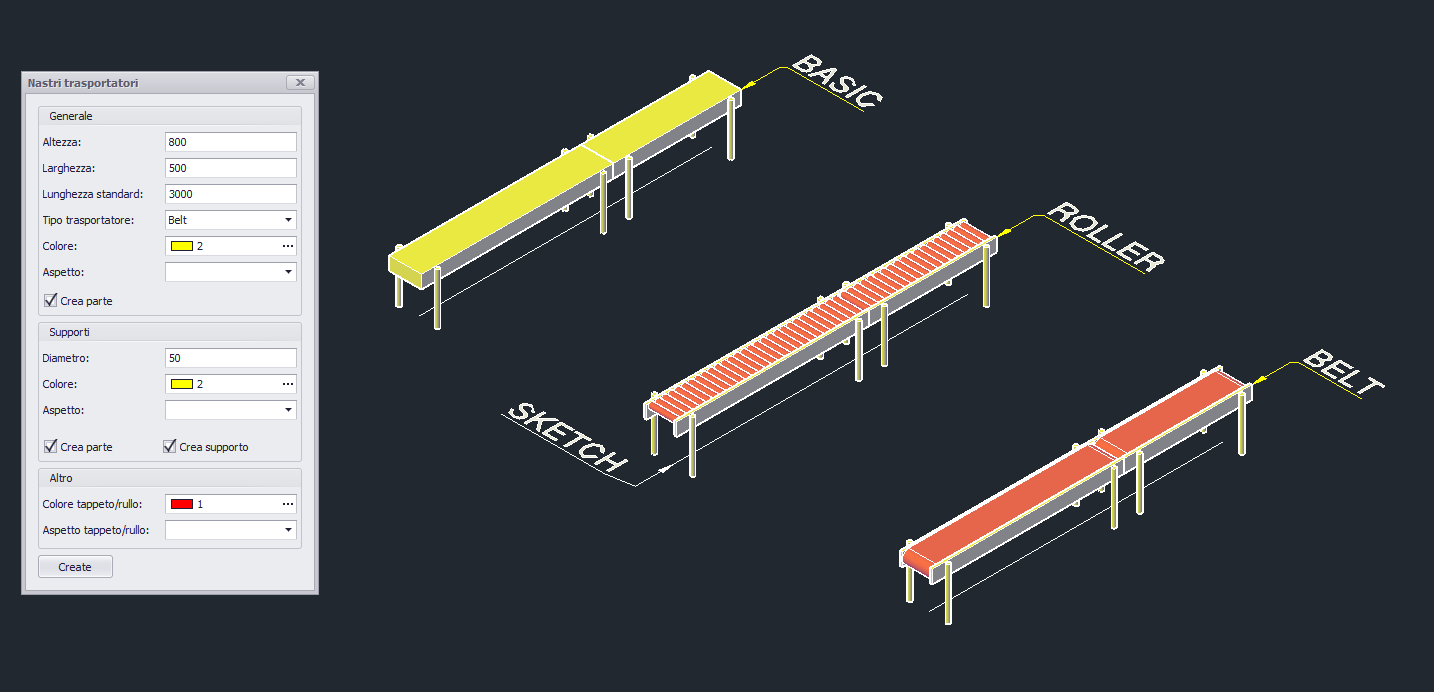 Create Part: Determines if the software has to create a part dedicated to the conveyor.