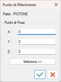 Il comando mostra una finestra di dialogo, precompilata con le coordinate del punto di riferimento della parte corrente.
