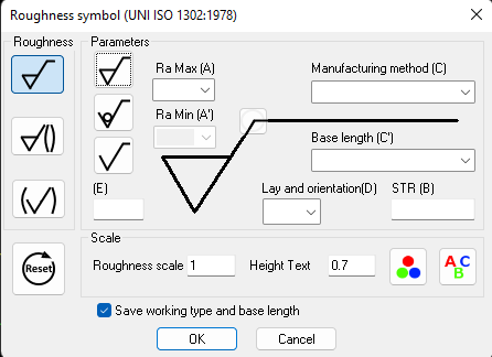 - Increases the speed to insert a symbol in the drawing through a dialogue box which allows a practical and intuitive insertion of the parameters associated to the roughness.
